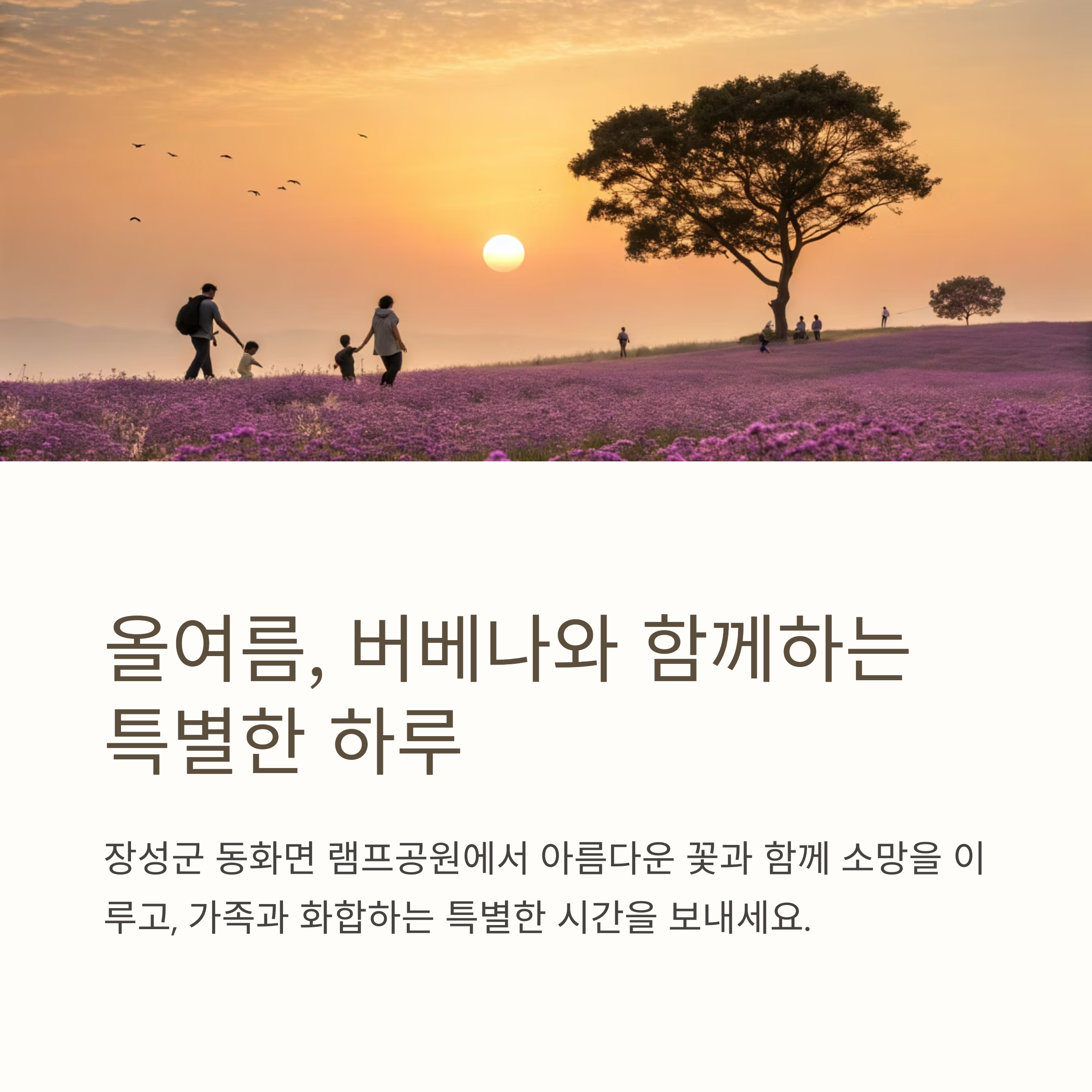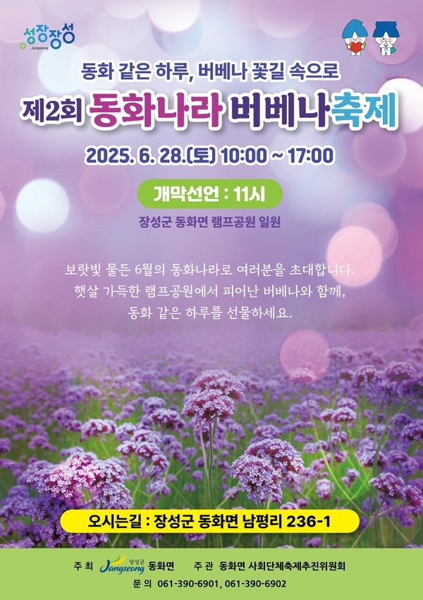 올여름, 장성군 동화면 램프공원에서 펼쳐지는 '제2회 동화나라 버베나축제'에서 아름다운 꽃과 함께 소망을 이루고, 가족과 화합하는 특별한 시간을 보내세요. 아름다운 추억을 만들 수 있는 소중한 기회가 될 것입니다.