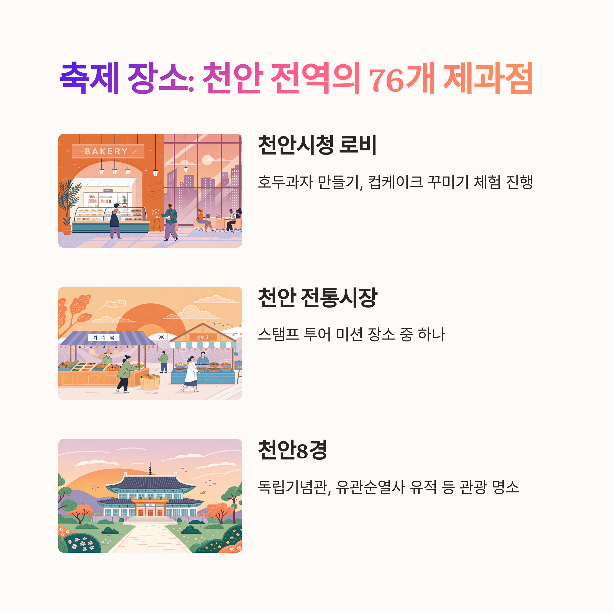 축제 장소: 천안 전역 참여 제과점 및 천안시청 로비 📍