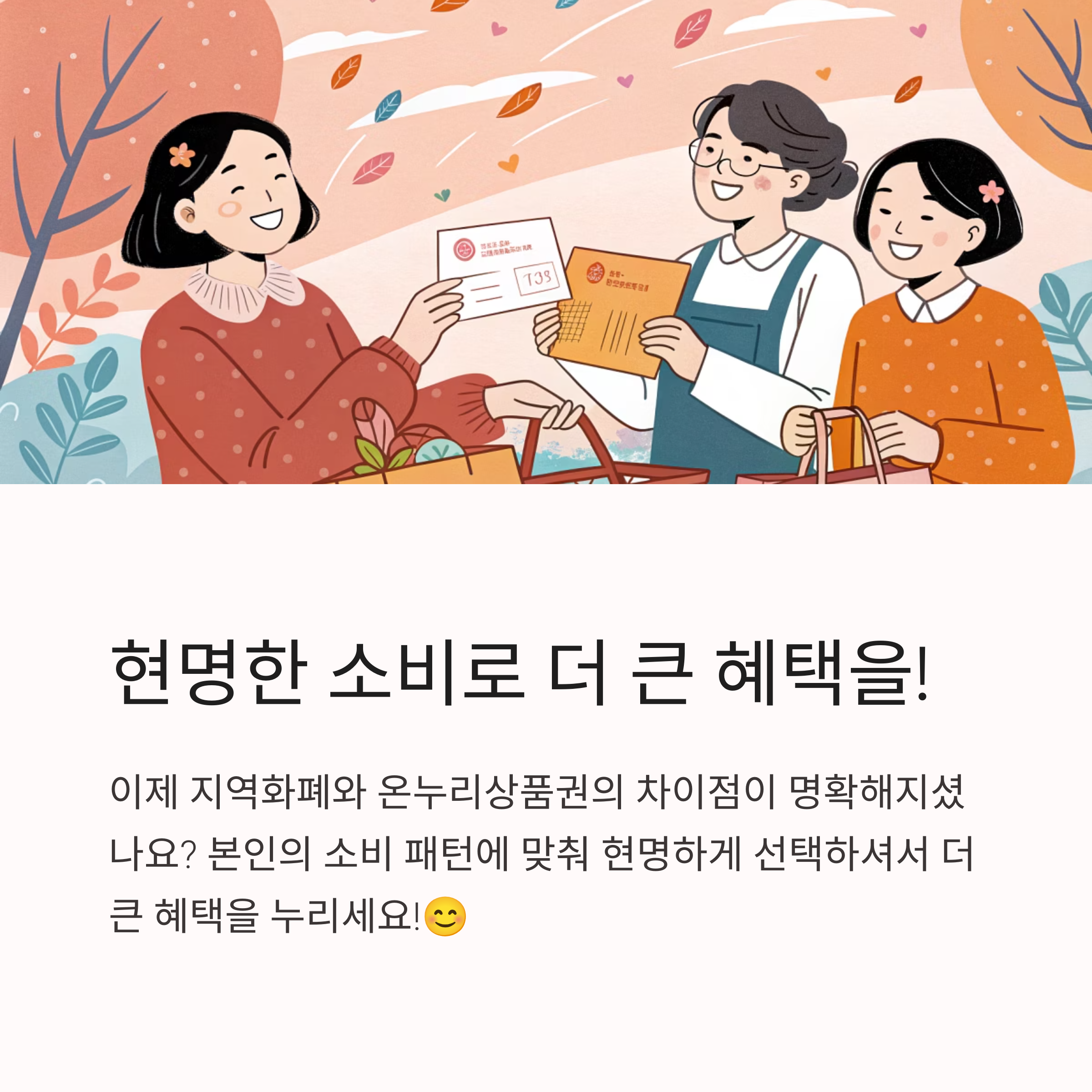 이제 지역화폐와 온누리상품권의 차이점이 명확해지셨나요? 본인의 소비 패턴에 맞춰 현명하게 선택하셔서 더 큰 혜택을 누리시길 바랍니다! 혹시 더 궁금한 점이 있다면 언제든지 댓글로 남겨주세요 😊