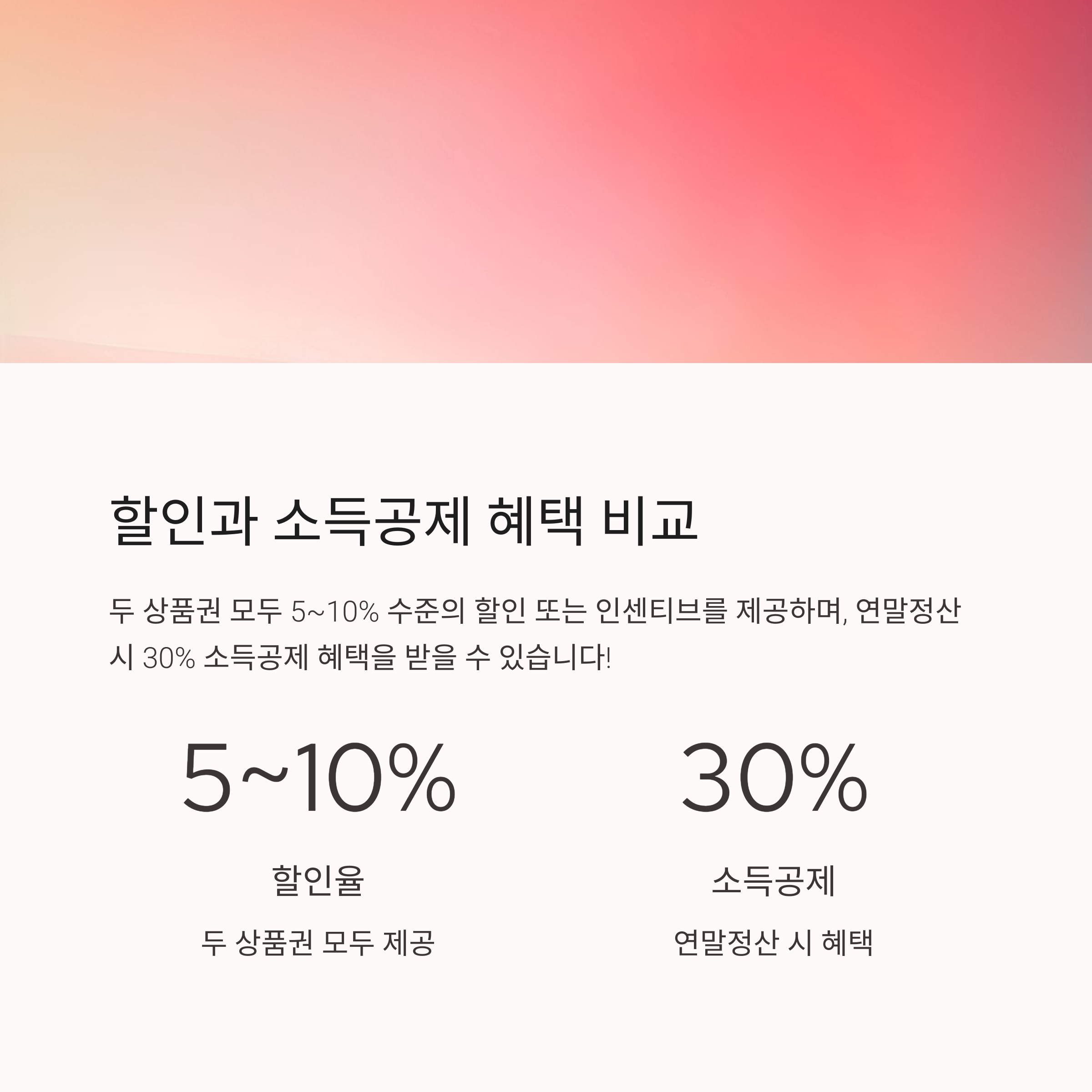 돈을 아낄 수 있다는 점에서는 둘 다 큰 매력이 있죠! 할인율과 소득공제 혜택은 어떻게 다를까요?